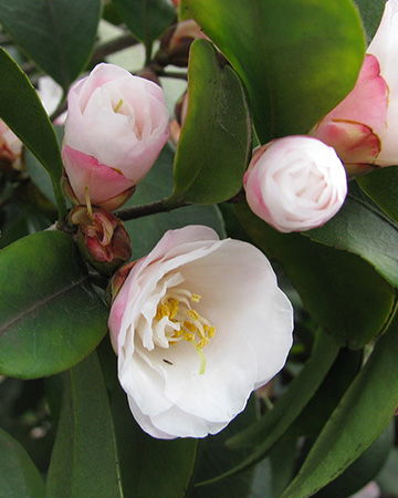主要形態特征:花粉白色,花瓣基部具深粉紅色條紋,單瓣,小花型,平均花徑2.79cm,花瓣5枚。多枚花蕾頂生或腋生,開花極其繁密。花期2月下旬-4月,長達40天左右。嫩葉紫紅色,成熟葉片濃綠色...